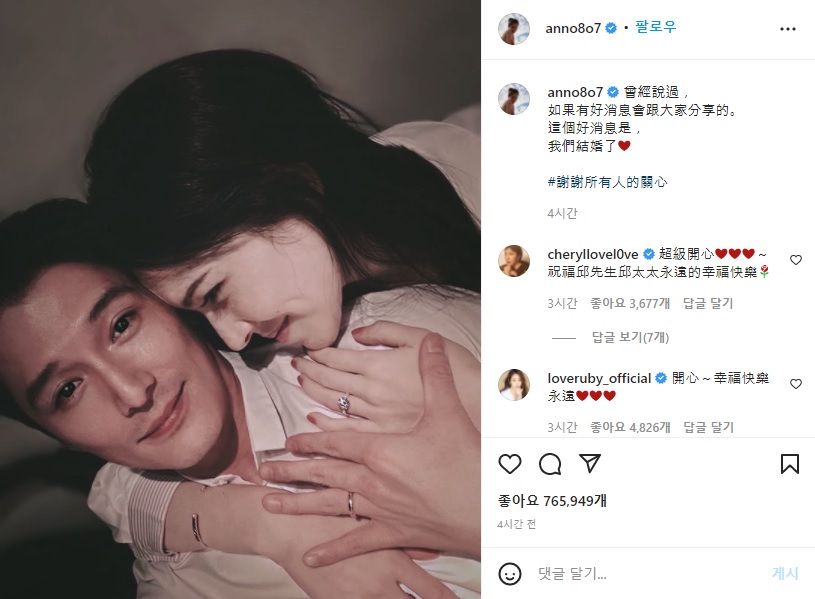 다정한 사진 공개하며 결혼 선언