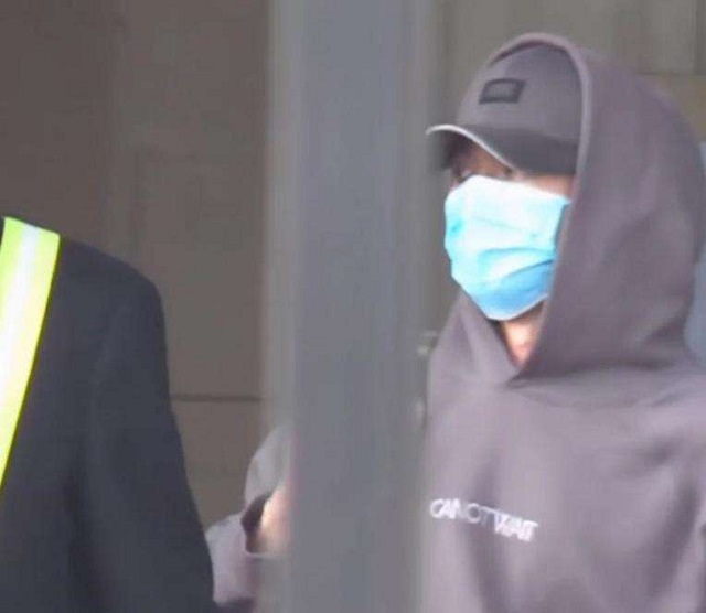 후드티셔츠의 모자로 가린채 베이징에 모습을 드러냈고