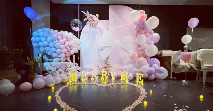 프로포즈 현장은 여성이 좋아하는 핑크빛으로 가득하고