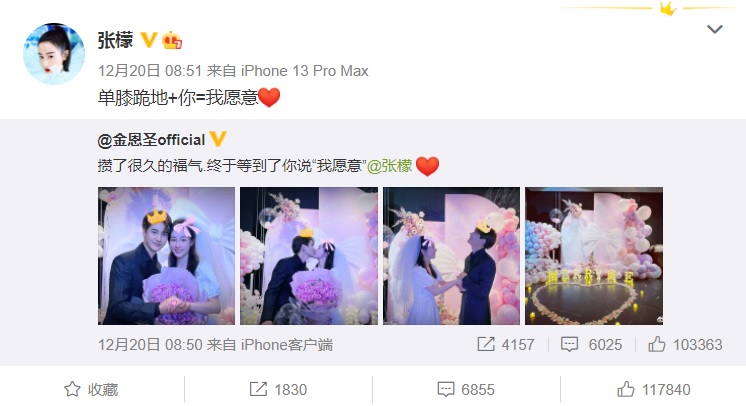네티즌들의 말처럼 #金恩圣成功求婚张檬#