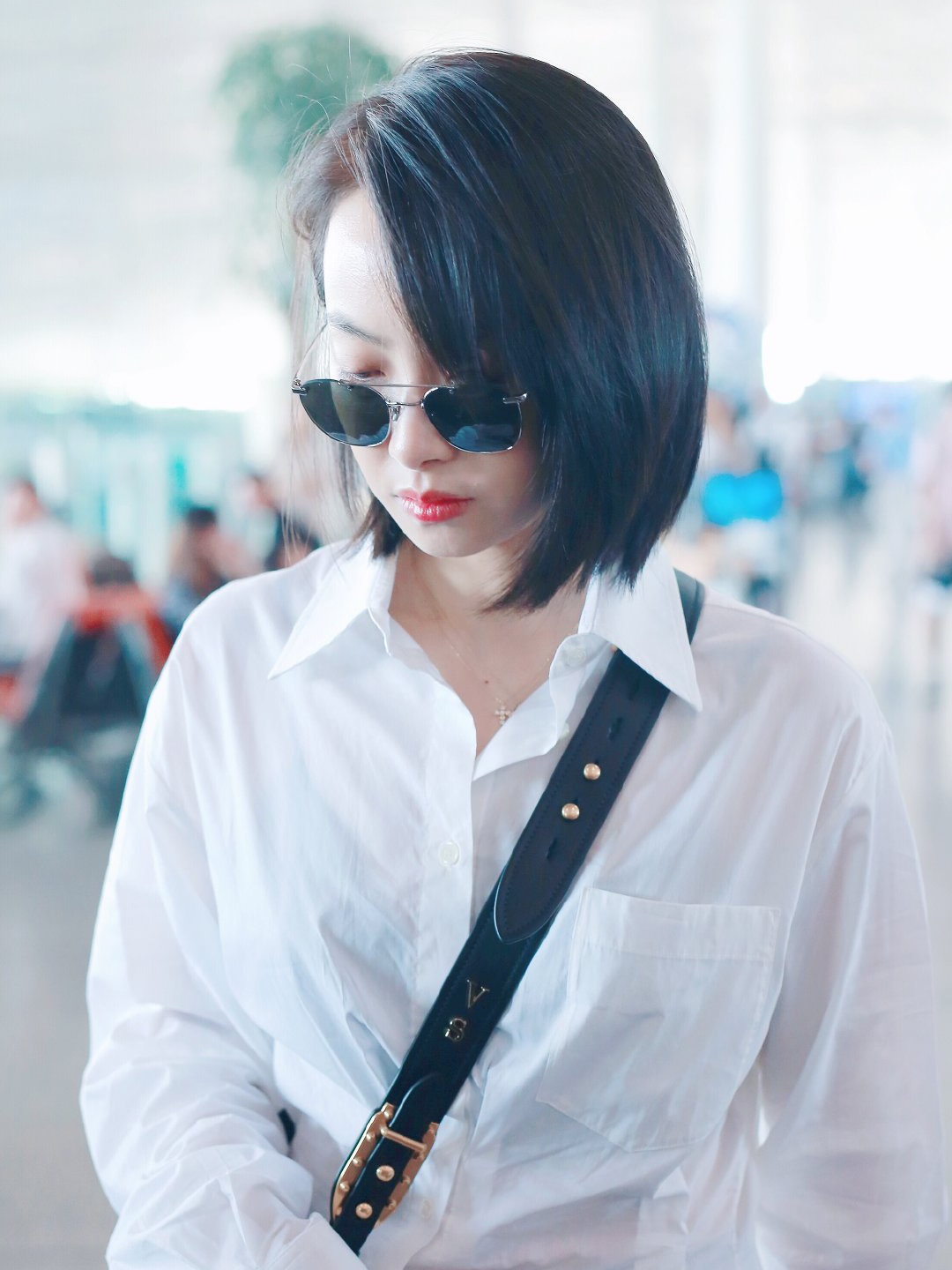 송쳰의 패션은 또한 안티에이징의 단발머리 스타일과