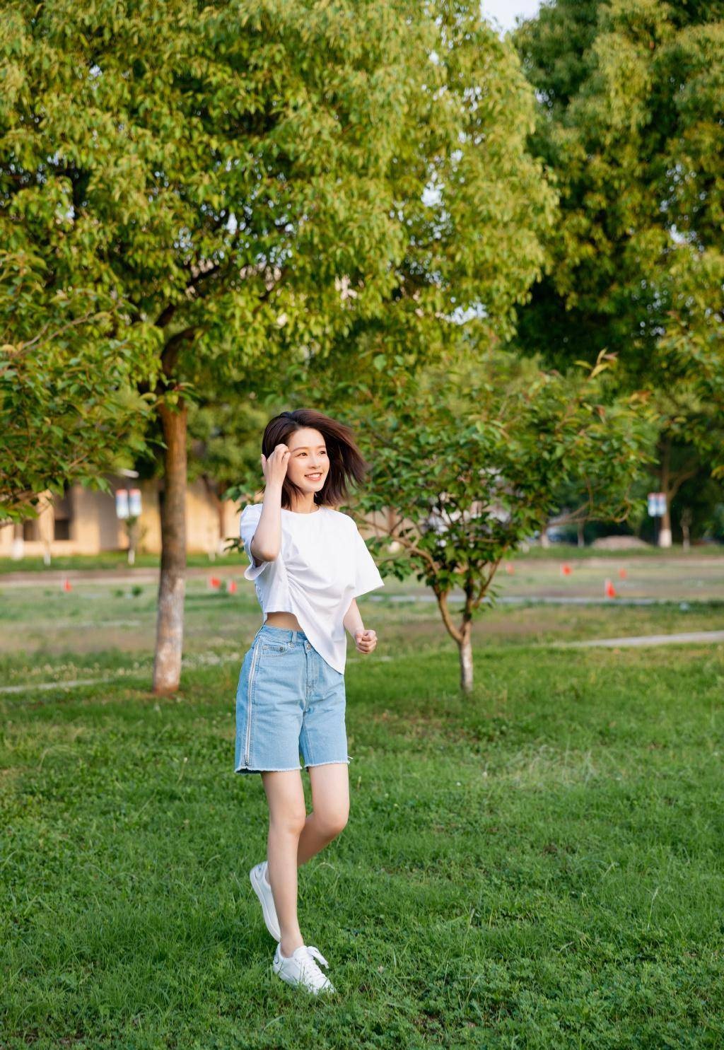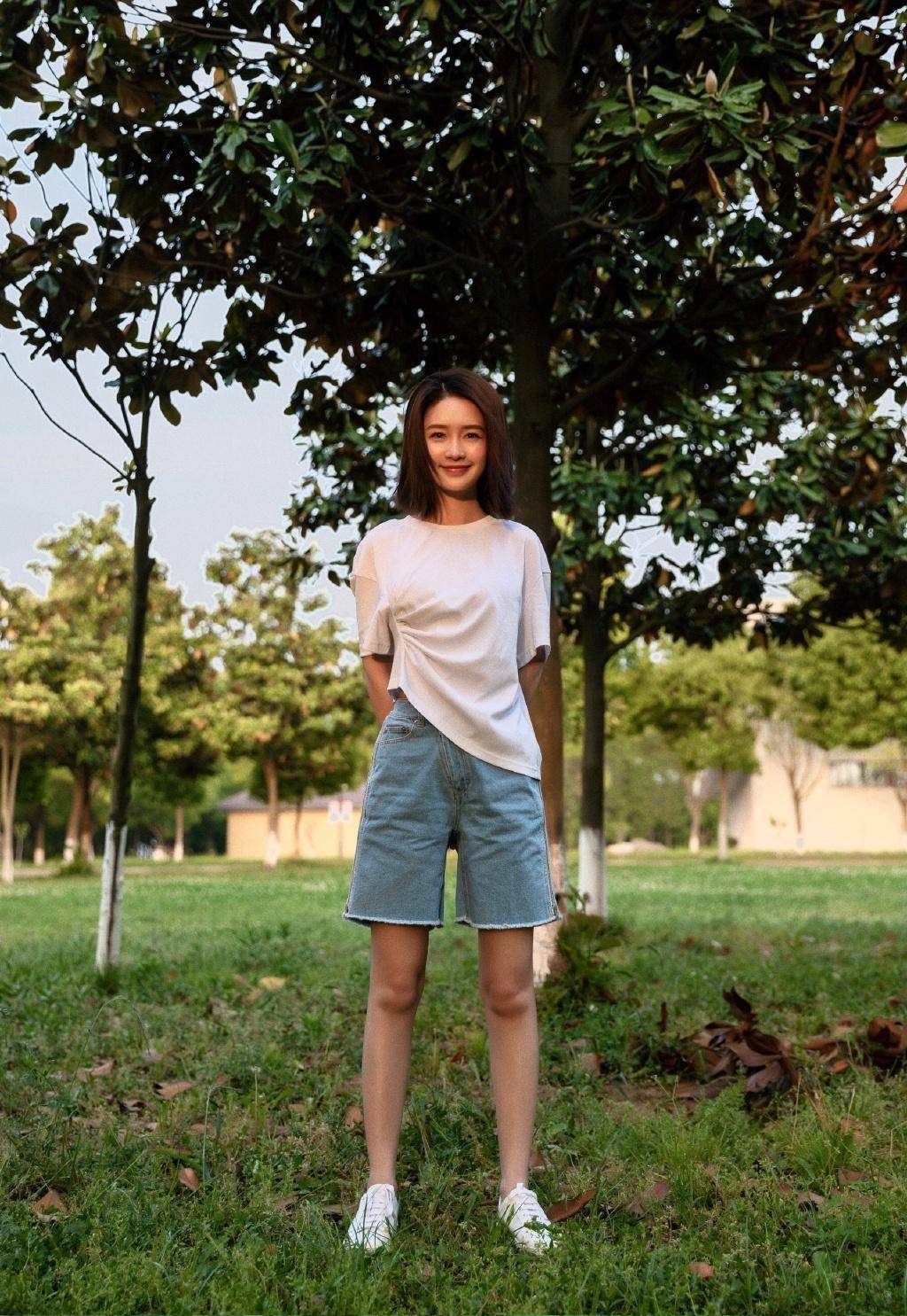 그리고 그녀는 하반신에 데님 반바지를 선택해
