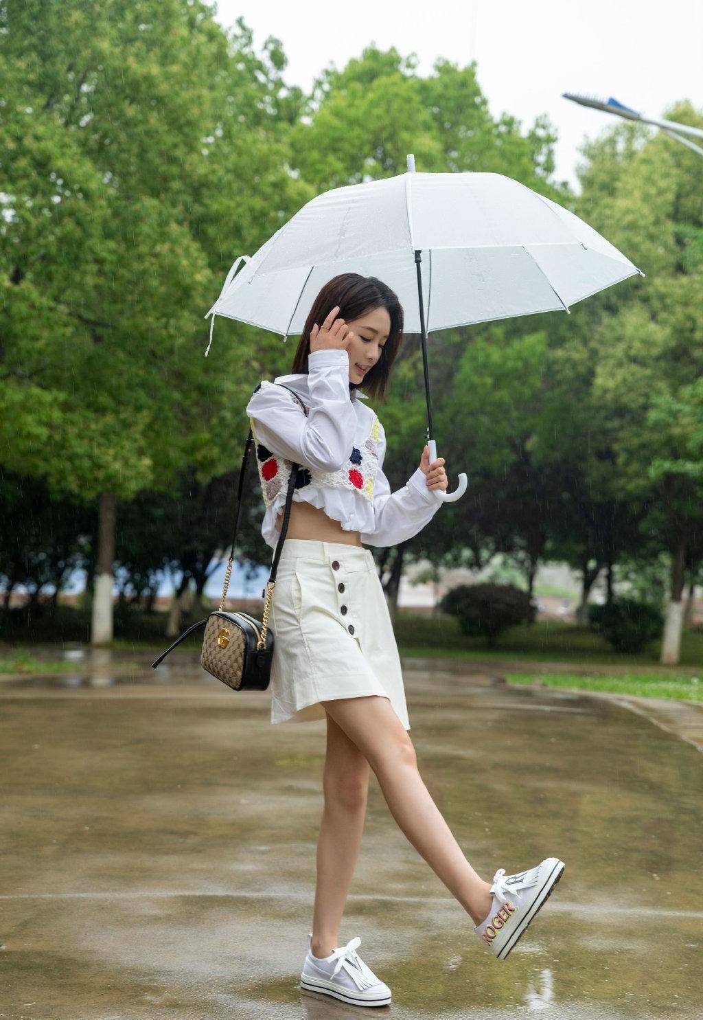 하얀 우산으로 아름다운 장면을 연출하고 있다.