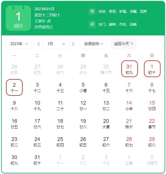 2023년 원단(元旦, 신정) 휴가일정이 7일 오전에 발표됐고, 곧바로 웨이보 실검 1위를 장식했으며, 관광예약 플랫폼 통청뤼씽(同程旅行 동정여행)의 데이터에 따르면 항공권 검색량이 5배 이상 상승했다고 밝혔다.