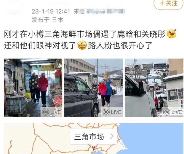 刚才在小樽三角海鲜市场偶遇了鹿晗和关晓彤,