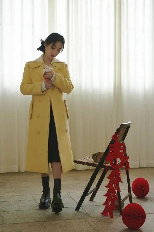 공유한 사진에서 양쯔는 노란색 코트에