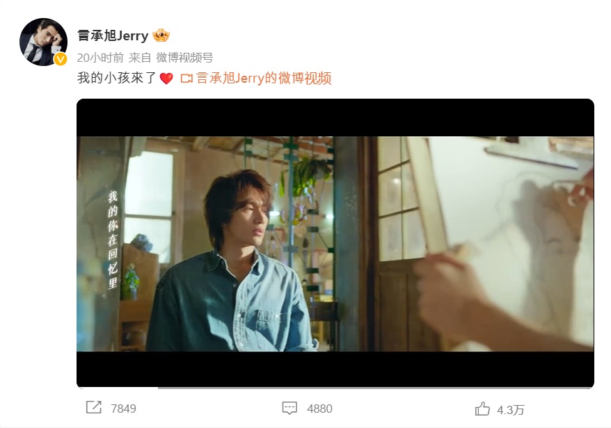아빠로 업그레이드 됐음을 밝힌 옌청쉬(言承旭 언승욱)