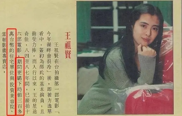 사실 1990년대 왕주셴은 한 매스컴과의 인터뷰에서 현재 갖고있는 돈이 평생 쓰기에 충분하다고 말했었다. 왕주셴은 결코 백치미인(白痴美人)이 아니었고, 돈 버는 두뇌를 소유하고 있는 여장부였던 것이다. 그 해 왕주셴은 첫번째 영화를 촬영하고 출연료를 받은 이후 타이완에 대저택 한채를 구입했다.
