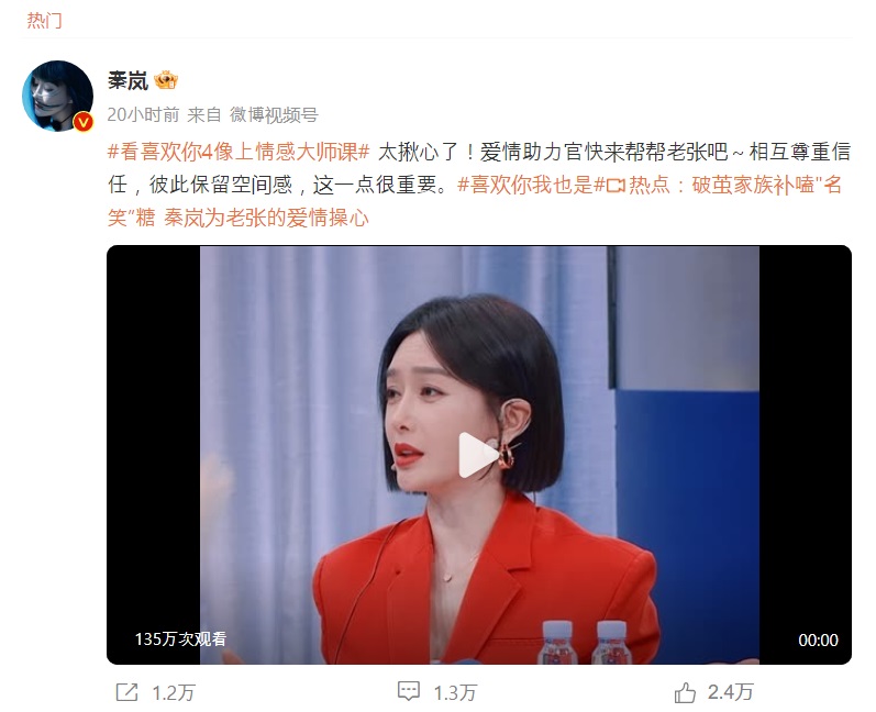 5월 3일 친란은 자신의 웨이보를 업로드하며 자신의 프로그램을 홍보했다. 하지만 그녀는 덧글에서 이 프로그램을 녹화하는 것이 마치 감정 테스트를 받는 것 같다고 말했다. 그리고 이어 서로에 대한 신뢰를 존중하고, 서로의 공간감을 보존하는 것이 매우 중요하다고 밝혔으며, 또한 프로그램에서 친란은 한결같은 남자를 존중한다고 말했다.