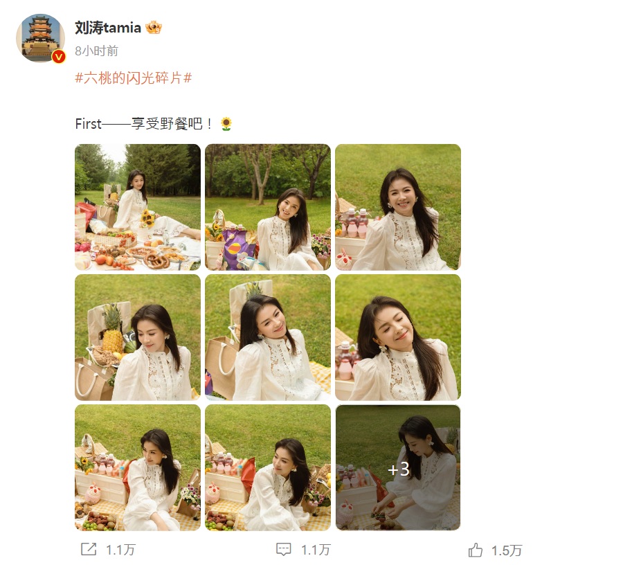 사진에서 류타오는 다양한 스타일의 의상을 입고 피크닉을 가거나 혹은 자신에게 마음껏 에너지를 방출하는 여유를 선사하거나 혹은 자유롭게 큰 웃음을 지어 보이기도 했다. 그녀는 웨이보에 사진과 함께 "피크닉을 즐겨봐요!", "마음껏 에너지를 방출해 봐요!", "마음껏 크게 웃어봐요!"라고 덧글을 달아 그녀의 즐거운 마음을 그대로 느끼게 해주고 있다.