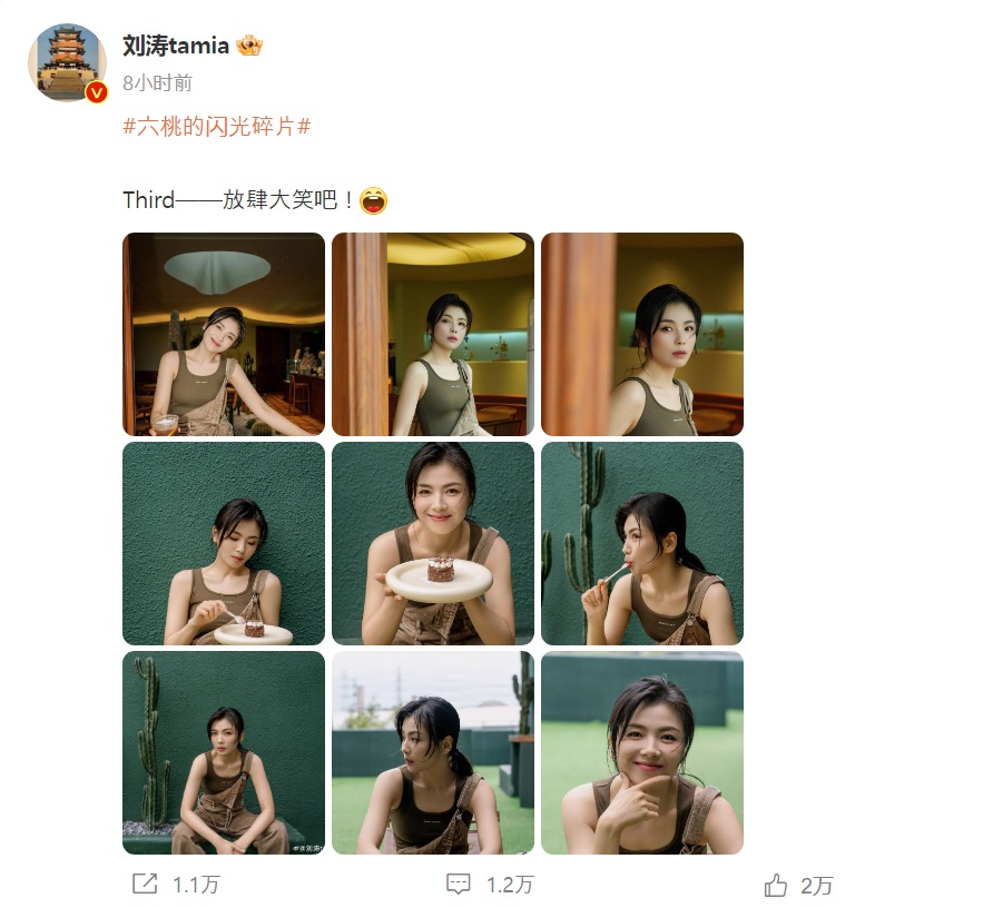 7월 12일은 중국의 여성스타 류타오(유도)의 45번째 생일이다. 생일 당일 그녀는 웨이보에 연달아 30장의 사진을 업로드 했으며, 사진과 함께 업로드한 덧글엔 즐거움이 넘쳐 흘렀다.