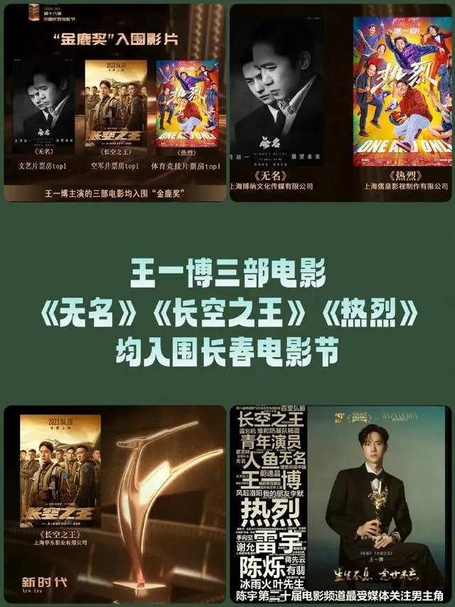 왕이보 세편의 영화 "무명", "장공지왕", "열렬"
