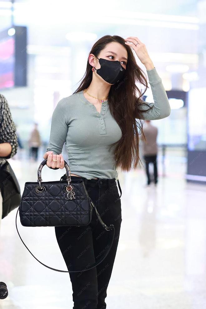 또 다른 공항 패션에서의 지나 앨리스는 타이트한 셔츠로 가슴 라인을 완벽하게 그려내며 섹시하면서도 여성스러운 분위기를 강조하고 있다. 그리고 하의엔 블랙 스키니 팬츠를 매치해 날씬해 보이는 효과를 연출해 냈다. 스키니 팬츠는 날씬한 허리를 강조하고 힙업으로 완벽한 몸매를 만들어 주고 있으며, 단 한번으로 날씬함과 키가 커보이는 효과를 완성해 냈다.