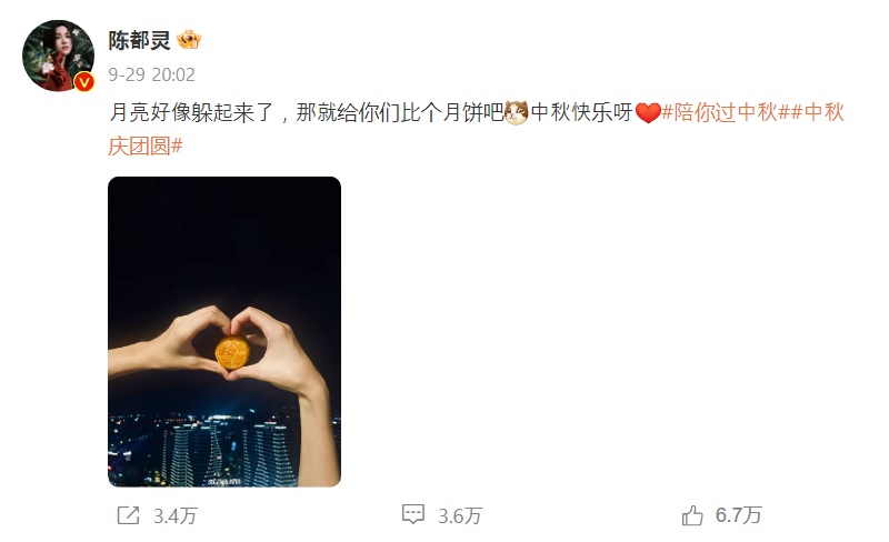 그들은 천두링이 중추절에 보낸 하트와 월병 사진은 팬과 시청자들에 대한 감사의 뜻일 뿐 덩웨이와는 아무런 관련이 없다고 선을 그었다. 덩웨이 또한 천두링과는 평범한 친구일 뿐이며, 두 사람 사이에서 우정을 뛰어넘는 어떠한 행동은 없었다고 했다.