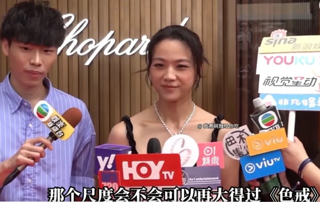 이러한 질문이 나오자 현장의 기자들 모두 어색한 미소를 지었고, 탕웨이 또한 기자가 이러한 질문을 직접적으로 던질것이라는 것을 생각하지 못했다는 반응을 분명하게 드러냈다. 하지만 그녀는 빠르게 마음의 감정을 추스린 이후 대범하게 이 질문에 대해 대답하기 시작했다.