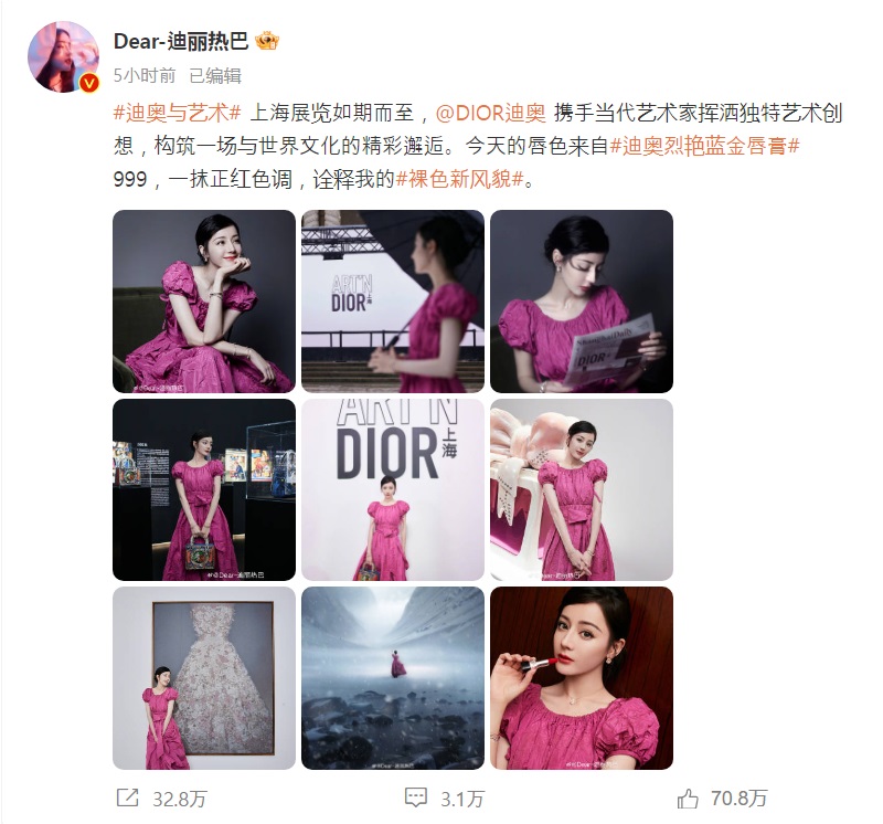 최근 디리러바가 웨이보에 업로드한 사진이 빠르게 인기를 끌어 올렸다. 그녀는 용과(火龙果) 색 공주 스커트를 입고 색다른 매력을 드러냈다. 이번 디리러바가 입고 있는 스커트는 특히 눈길을 잡아끌고 있다. 용과색의 선명함과 디리러바의 아름다움이 너무나 잘 어울리기 때문이다.