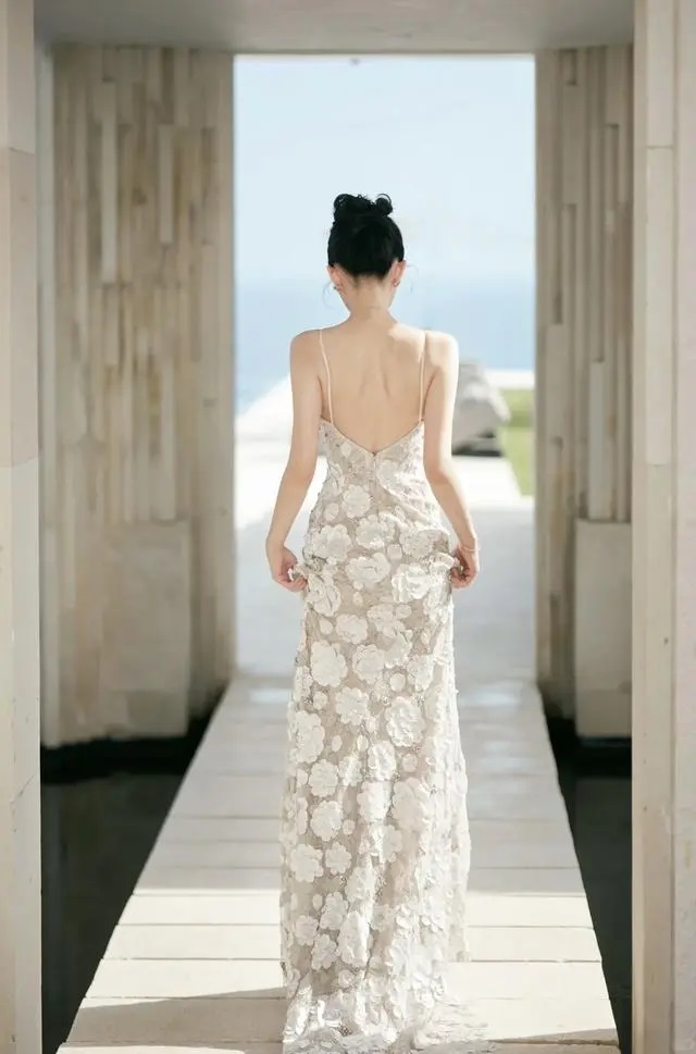 하나 하나의 스팽글은 불빛 아래에서 하늘의 별처럼 환상적으로 빛을 발하고 있으며, 그녀의 웨딩룩에 매혹적인 럭셔리함을 더해주고 있다. 쉬엔윈은 이 순간 결혼식 전체의 초점이 됐고, 그녀의 아름다움은 마치 동화 속에서 튀어나온 것과 같이 황홀한 마법의 향기를 뿜어내고 있다.