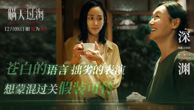 장쥔닝(张钧甯 장균녕), 쉬광한(许光汉 허광한) 주연의 미스터리 블록버스터 《瞒天过海 만천과해, The Invisible Guest》의 박스 오피스가 요 며칠 1억위안(약 182억원)을 돌파하며 올해 중국 국산 영화시장의 하이라이트로 떠올랐다. 뇌세포를 태우는 듯한 반전의 스토리와 캐스팅으로 관객들의 뜨거운 사랑을 받고 있으며, 특히 장쥔닝이 맡아한 "恶女 악녀" 캐릭터가 사람들의 시선을 사로잡으며 화제를 불러 일으키고 있다.