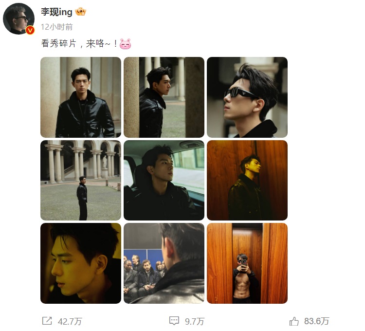한밤중 셀카 찍어 복근 사진 공유한 리셴(李现 이현)