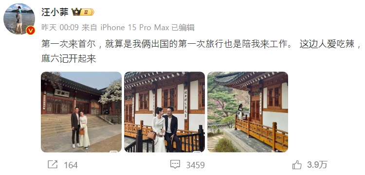 왕샤오페이(왕소비)와 새로운 반려자 마샤오메이(마소매)의 한국 여행이 의외로 많은 네티즌들 사이에서 화제로 떠올랐다. 그들은 한국 길거리에 여러차례 모습을 드러내며 그동안 절제했던 행동을 깨고 공론의 초점으로 떠올랐다.