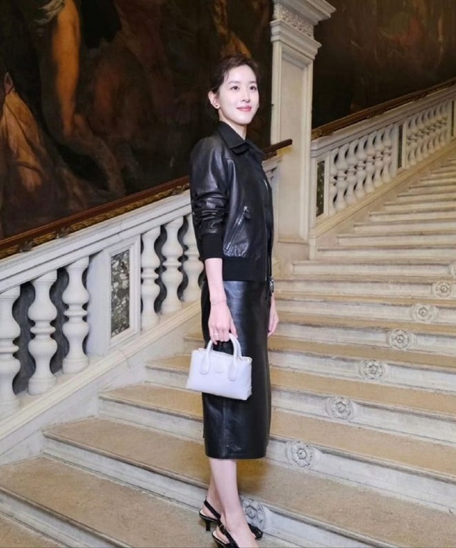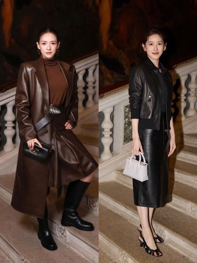 가죽 의상 외에도 장저티엔의 코디 또한 마찬가지로 돋보인다. 그녀는 블랙 계열의 펀칭 하이힐을 선택해 전체적인 라인감을 유감없이 드러내고 있다. 이와 동시에 밀크티녀의 손엔 미백색의 사각 핸드백이 들려 있으며, 이는 정교하고 고급스러워 전체적인 룩에 우아함과 패셔너블함을 더해주고 있다.