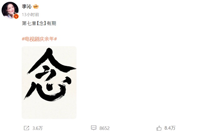 이와 동시에 "린완얼(林婉儿 임완아)" 역을 연기했던 리친(이심) 또한 sns에 간단하게 "念 념, 그립다"이라고 단 한 글자를 업로드하며 《庆余年 경여년》 시즌 2와 작별 인사를 하며 캐릭터에 대한 아쉬움과 시청자들에 대한 감사 인사를 보냈다.