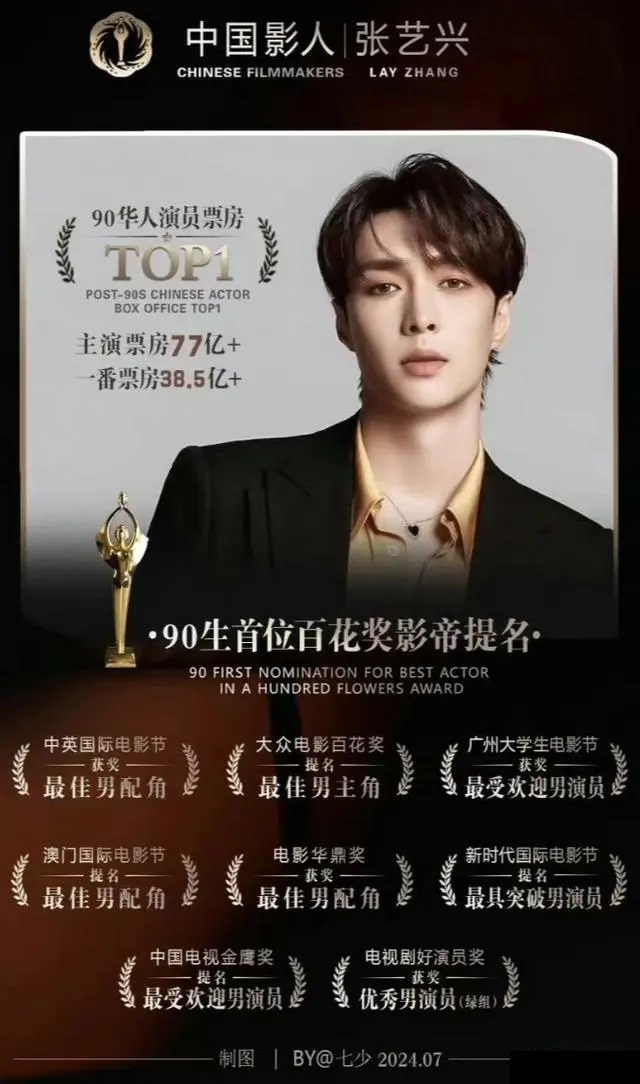 백화장(百花奖) 최우수남우주연상 후보에 오른 장이씽(张艺兴, LAY)