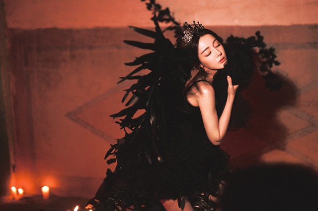 빛과 그림자가 교차하는 어두컴컴한 공간 속에서 디리러바는 어두운 밤에 피어나는 흑장미와도 같이 블랙의 민소매 튜브탑 짧은 스커트를 입고 조용히 그녀만의 이야기를 들려준다.