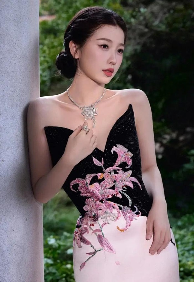 위슈신의 의상이 돋보이고 있는 것은 물론이고, 그녀가 선택한 주얼리 또한 눈길을 사로 잡고 있으며, 나아가 얼굴형과 잘 어울리는 헤어스타일까지, 매끄럽고 작은 얼굴에 올림머리는 그야말로 절묘하게 잘 어울리고 있다.