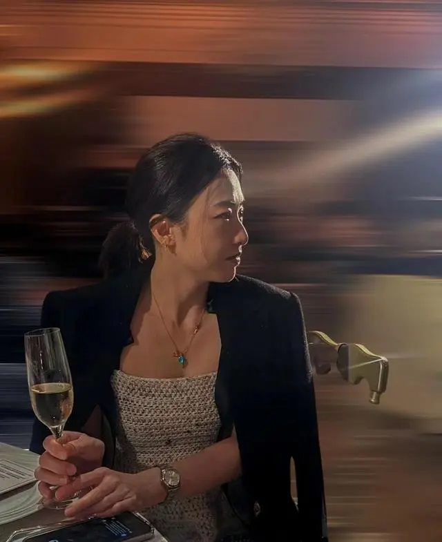 귀부인 간비와 함께한 자리에서 위슈신의 얼굴은 더욱 작고 매혹적으로 다가온다. 물론 간비 또한 매우 출중하다. 그녀는 블랙 수트에 안에는 그레이 컬러의 펀칭 니트를 입고, 포니테일 헤어 스타일에 럭셔리 손목시계를 매치해 귀부인의 포스를 물씬 풍기고 있다.
