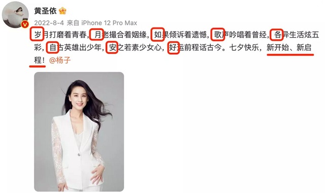최근 인터넷에 전해진 소식에 의하면, 인기 예능 프로그램 《再见爱人4, 재견애인 4》의 종영을 앞두고 황셩이(황성의)가 양쯔(양자)와 갈라서기를 선언했다는 소식이 전해졌고, 이는 사회 각계의 관심과 화제를 불러 모으고 있다고 전했다.