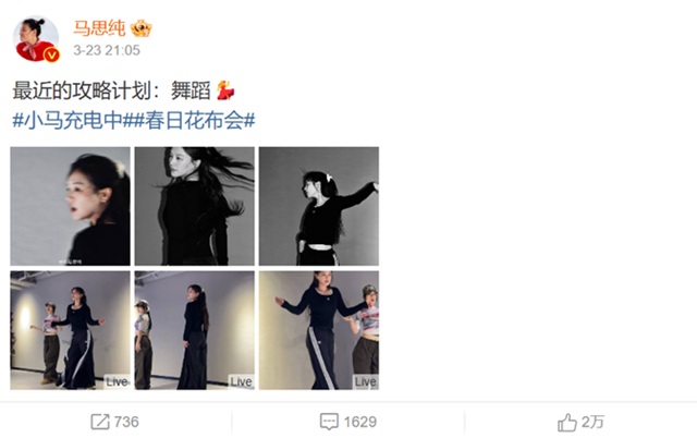 댄스 연습 사진과 영상 공유한 마스춘(马思纯 마사순)