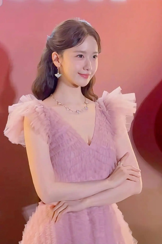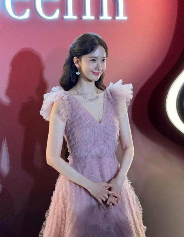 이어 임윤아는 핑크색 V넥 샤드레스를 선택해 입었고, 그런 그녀의 전체적인 분위기는 우아하면서도 달콤함을 잃지 않고 있으며, 그녀의 달콤하고 부드러운 이미지와 잘 어우러지고 있다.