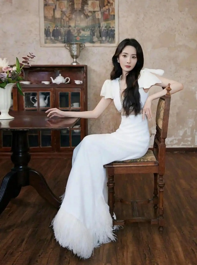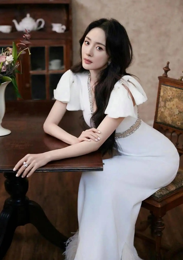 38살의 양미(양멱)가 다이아몬드 장식의 화이트 원피스를 입고 섹시함과 우아함을 완벽하게 조화시켜 내며 눈길을 사로 잡았다. 깊은 V넥과 다이아몬드 장식으로 포인트를 주어 그녀의 부드럽고 아름다운 몸매의 윤곽을 그려냈고, 퍼프 소매 디자인은 빈티지한 낭만을 더했다. 세월은 그녀에게 플러스 요인으로 작용하고 있으며, 이 스커트는 그녀의 정교한 스타일 감각을 보여주고 있을 뿐만 아니라, 38살 여성에게 스타일링에 대한 영감을 제공해 주고 있다. 이렇게 그녀는 잘 선택한 아이템으로 세월의 아름다움을 우아하게 발산해 내고 있다.